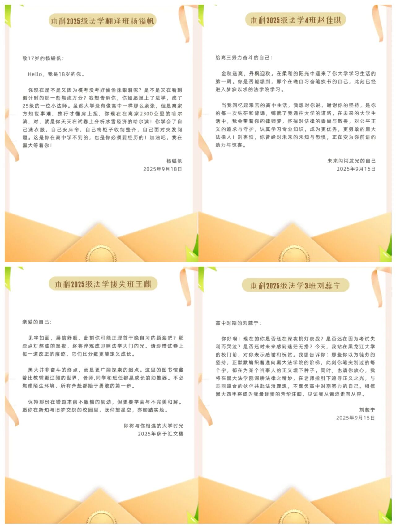 围绕“追忆芳华岁月,共赴一片未来”为主题积极开展心理活动。在活动中,同学们化身为真诚的倾诉者,以书信为媒介,回望高中难忘瞬间,畅叙对大学的期许,在书写中释放真实情感,缓解对新环境的陌生与焦虑,更清晰地认识自我、明确价值追求。本次活动以书信这一充满温情的形式吸引了很多学生,同时引导学生积极拥抱变化,勇敢开启人生新征程。