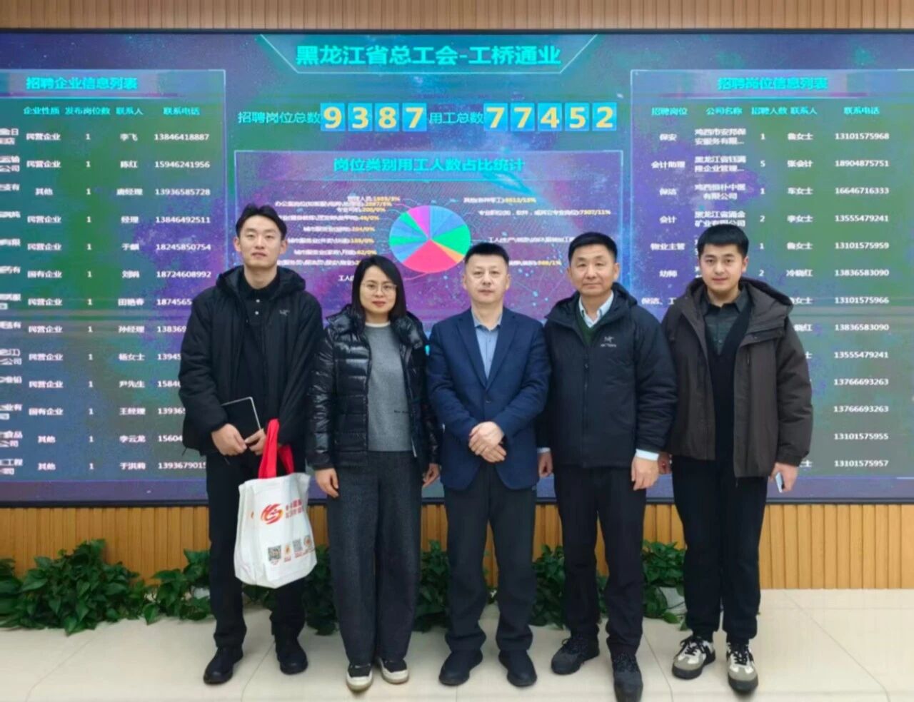 正处级组织员许辉、党委副书记董捷、2026届硕士毕业生辅导员王博,前往黑龙江省总工会工桥通业职工再就业服务中心(以下简称中心)座谈交流。