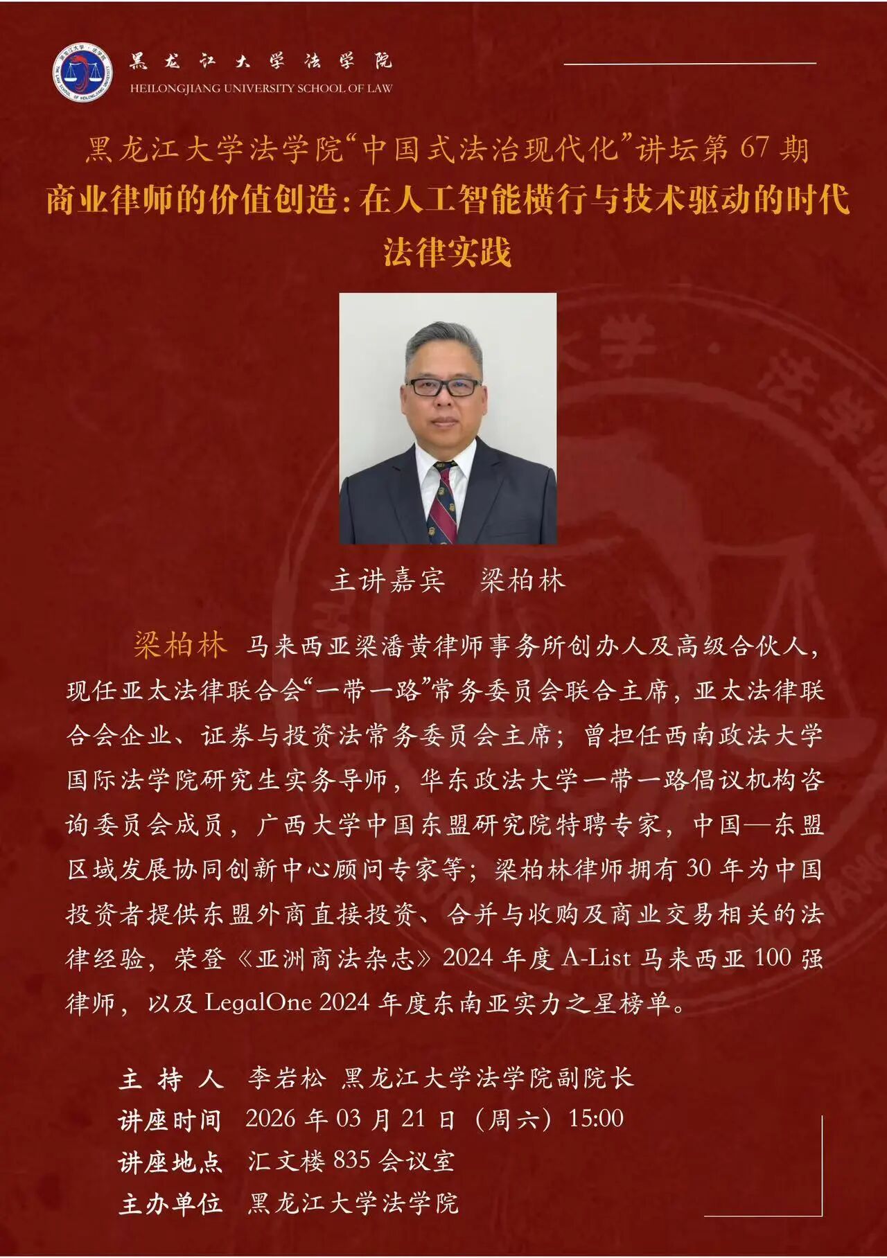 讲座预告丨麻豆av “中国式法治现代化”讲坛第67期 商业律师的价值创造:在人工智能横行与技术驱动的时代法律实践
