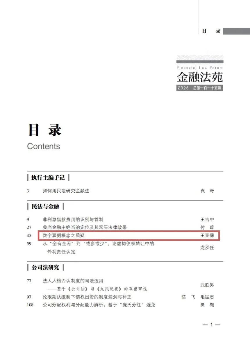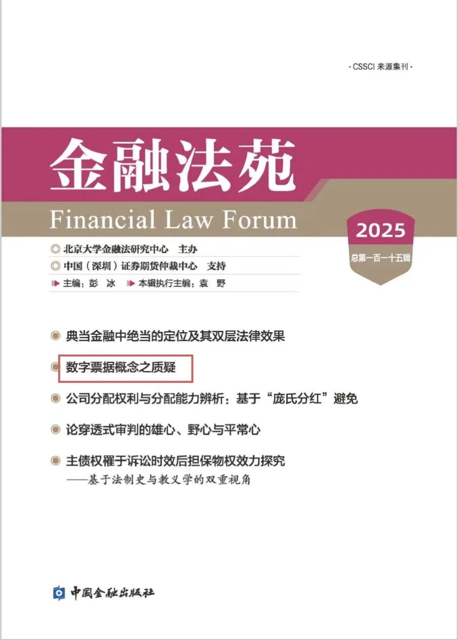 我院教师王亚霈撰写的论文《数字票据概念之质疑》被《金融法苑》(总第115辑)收录。